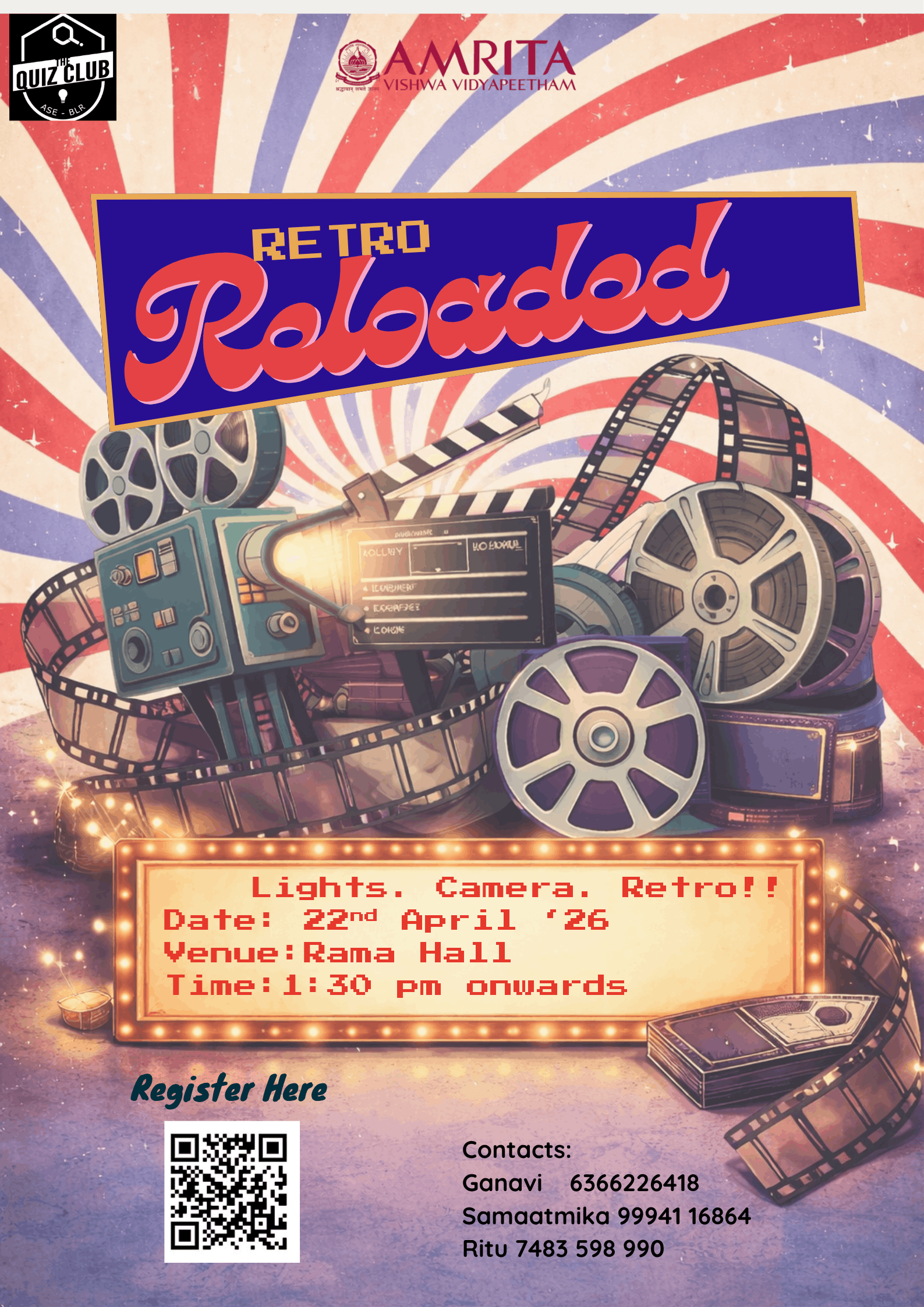 Step into a time machine and rediscover the golden eras of pop culture in Retro Reloaded 2.0! This high-energy event invites students to trade the present for a nostalgic journey through the iconic sights and sounds that defined generations. From legendary media moments to viral vintage trends, the theme celebrates everything that makes the past "classic" while bringing a fresh, competitive edge to the campus. The challenge is split into two high-stakes rounds designed to test both individual knowledge and team synergy. Students will first face an intense elimination qualifier that demands quick reflexes and sharp memory, followed by a theatrical, fast-paced finale where communication is the only way to survive. Whether you’re a 90s kid at heart or a fan of the early 2000s, prepare for an evening of vibrant energy, rhythmic throwbacks, and the crowning of the ultimate retro champions